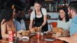 4k video footage of a waitress delivering food to a group of friends - Vídeo de stock 4K