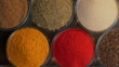 DS Above colorful spices in glass bowls - Vídeo de stock 4K