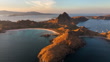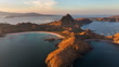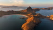 Aerial Drone Sunset Scene of Padar Island in Komodo National Park, Beautiful landscape Indonesia, It is the third largest island part of Komodo National Park.