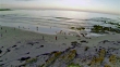 Aerial of people enjoying the beach at dusk/ Western Cape/ South Africa - Vídeo de stock HD