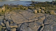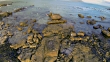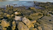 Aerial over rocky inlet and Greyheaded Gulls/ Western Cape/ South Africa - Vídeo de stock HD