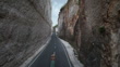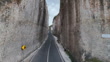 Aerial view of Pantai Tanah Barak in Kuta, Bali, Lonely woman walking and running on Tanah Barak cliff path, Young beautiful woman discovers unknown places of Bali, Aerial view of the path carved from limestone cliffs