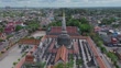 Aerial view of Wat Phra Mahathat Woramahawihan temple in Nakhon Si Thammarat, Thailand