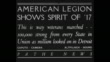 Title card: "American Legion Shows Spirit Of '17 - This is way veterans marched--100,000 strong from every State in Union as million looked on in Detroit" / AERIAL American Legion parade / VS parade: band, spectators, airplane floats / Mississippi American Legion float, women on float throw flowers / aerial float with liberty bell / California American Legion marching / more spectators watching parade / car drives by with veterans on it / drum corps marches / marchers carrying American flags go by / AERIALS band marching, streamers, crowds / CU corn king of Indiana float / aerial float / veterans march / Ohio float goes by / veterans carrying American flags march toward camera / generals salute from reviewing platform / veterans march carry American flags and flag with British Union Jack on it / VS veterans march / PAN large crowd / VS veterans march and carry flags / AERIAL parade and crowds / Note: exact day not known