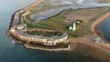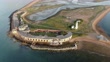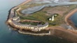 LYMINGTON, ENGLAND - AUGUST 10: An aerial view showing the damage at Hurst Castle on August 10, 2021 in Hampshire near Lymington, England. Hurst Castle, south of Lymington, was established by Henry VIII between 1541 and 1544 and is situated on Hurst Spit. On 26 February 2021, the wall of the eastern wing partially collapsed during a severe winter storm. Preservationists cite the damage as a consequence of intensifying storms and sea-level rise driven by climate change. (Footage by Finnbarr Webster/Getty Images)
