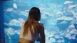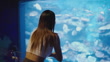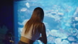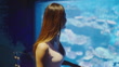 Aquarium concept of 4k Resolution. Asian woman traveling in an aquarium.