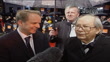 Bafta awards ceremony; EXTPeter Sallis (Voice of Wallace) speaking to press, standing alongside Nick Park ('Wallace and Gromit' animator) SOT- I won't walk away with it, he (Park) will, I'm too old to lift itWiesz on red carpet (wearing indigo dress and holding umbrella)Back view of actor Jude Law arrivingThandie Newton (Winner of award for actress in a supporting role), wearing pink strapless dress, speaking to press (not heard)Long shot of Theron arriving in pouring rain, with man holding umbrella for her