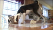 A Basenji roams on a table top and sniffs around. - Vídeo de stock HD