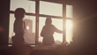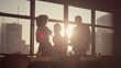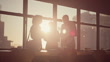 Business people, morning and handshake for meeting, partnership or b2b deal in agreement at the office. Group of employee shaking hands in sunrise for greeting, teamwork or collaboration at workplace - Vídeo de stock 4K