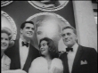 1960 MONTAGE Cary Grant, Dorothy Malone with Jacques Bergerac, John Gavin, Jean Simmons and Kirk Douglas pose for cameras / Hollywood, California, United States
