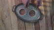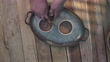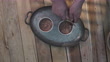 Two cups of chocolate mousse on antique pewter tray. Topping with chocolate shavings.