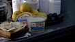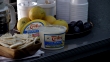 CLOSE ANGLE OF HUMMUS, PITA BREAD, GRAPEFRUIT AND PLUMS OR FRUIT ON COUNTERTOP NEAR COFFEE POT, SUGAR PACKETS AND STYROFOAM CUPS. COULD BE OFFICE BREAK AREA. FOOD. - Vídeo de stock HD