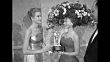 Close up Natalie Wood holds award for the late James Dean / Close up Grace Kelly hands Wood the award / camera zooms in on Wood holding award / Close up Kelly hands Wood award and shakes her hand / Close up man stands next to Kelly and hands her the award, she hands it to Wood who then shakes her hand and his hand. Another man stands on Wood's left.