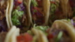 Close up of small beef tacos with vegetables - Vídeo de stock HD