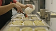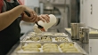 Close up shot of baker brushing cookies with icing / Salt Lake City, Utah, United States - Vídeo de stock HD