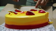 Close-up view of strawberry orange cake cutting - Vídeo de stock 4K