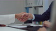 Closeup of young Asian businessman sign a contract investment professional document agreement and shake hands at office night. Businesspeople in workplace. - Vídeo de stock 4K