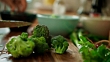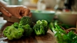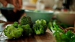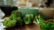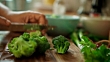 Cortar Brócolos numa tábua de cozinha para Nasi Goreng - Vídeo de stock HD