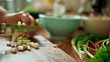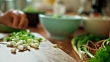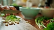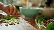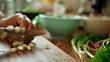 Cortar Cebolinhas numa tábua de cozinha para Nasi Goreng - Vídeo de stock HD