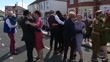 ARMED FORCES: VE Day 70th anniversary celebrations; WALES: Cardiff:EXTGVs Couples, some dressed in 1945 style, dancing at street party