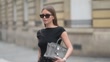 PARIS, FRANCE - APRIL 17: (SLOW-MO) Diane Batoukina wears a fitted black stretch T-shirt with a boat neckline by St. Agni, paired with high-waisted straight-leg black leather trousers by Fantôme Design. A grey leather Birkin bag with silver hardware by Hermes is carried by hand. Black patent YSL heeled sandals with a thin ankle strap complete the look. Rectangular black YSL sunglasses are worn. Hair is parted at the center and worn long and straight. Natural makeup with even skin and nude lips is visible. Full body shot, during a street style fashion photo session, on April 17, 2025 in Paris, France. (Footage by Edward Berthelot/Getty Images)
