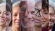 Collection of diverse American senior faces smiling