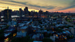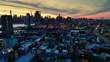 Aerial view of New York City from over Greenpoint, Brooklyn at sunset, looking towards Long Island City in Queens.