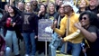 NEW YORK, NEW YORK - OCTOBER 25: Edie Falco and Billy Baldwin join union members and chant 'New York Is A Union Town' on day 104 of the SAG-AFTRA strike as actors and allies picket in front of Warner Bros headquarters on October 25, 2023 in New York City. The strike, which began on July 14th, entered it's 100th day on October 21st as the actors' union and Hollywood studios and streamers failed to reach an agreement. (Footage by Sandi Bachom /Getty Images)