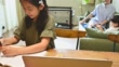Students who learn by studying at home using a computer. She uses a compass and a protractor to draw shapes.