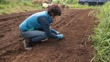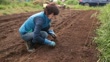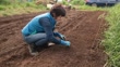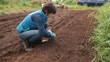 A female farmer working in the field preparing to sow seeds.