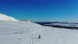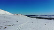 Flying over cross country skitracks in the mountain with Trysilfjellet in the horizon - Vídeo de stock 4K