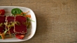 Fresh tuna raw with spicy salad sauce - Vídeo de stock 4K