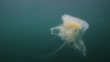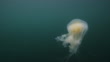 Fried Egg Jellyfish also known Egg-Yolk Jellyfish (Phacellophora camtschatica). Near Sooke on Vancouver Island. British Columbia, Canada. Filmed with Red camera.