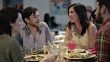 Friends talk and laugh together in restaurant - Vídeo de stock HD