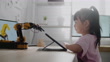 Girl control robot arm on Digital tablet, getting a lesson in robotics in high school - Vídeo de stock 4K