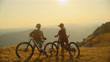 Slow motion shot. Backlit by the dying sun, two riders stand at the cliff's edge, their fingers tracing unseen paths across the valley below. Their bikes lean like compass needles beside them, still humming with the memory of the climb. The wind carries their conversation.