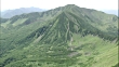 Green vegetation grows around Seven Pond Cirque on Mount Poroshiri in Hokkaido, Japan.