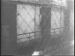Guard walking past prison cells, patrolling / guard looking through a prison cell peephole with the name Goering above it / guard approaching a prison cell door with the name Authur Seyss-Inquart / prison chef handing food through the cell door to the prisoner inside / Judge Robert H Jackson walking with his secretary and a soldier / close-up of Robert H Jackson / aerial view of a tunnel connecting the prison and courthouse / view of the courtroom under construction / soldiers watching over the construction as a painter works behind them / view of workers building out the courtroom / carpenters sawing a piece of wood / painter climbing a ladder / painter working on a ladder / man preparing a radio window in the courtroom / a man hammering wood / wide view of the courtroom in progress, guards walking to middle of the room.