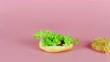 Video stop motion, Hamburger on pink background. Stacking burger animation, Fast food. 4K UHD format.