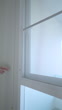 Hand raising a roller blind to allow daylight into a residential room. Illustrates light control, energy efficiency, home comfort, and simple interior lifestyle actions.