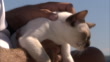 Hands stroke a Tonkinese kitten. - Vídeo de stock HD