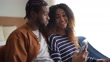 Happy young couple ordering food online with smartphone at home - Vídeo de stock 4K