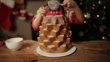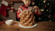 Happy young girl was decorating pandoro Christmas tree cake - Vídeo de stock 4K