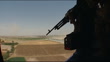 INT HELICOPTERMachine gun mounted on helicopter as along over British army base