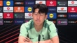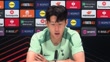 ENFIELD, ENGLAND - SEPTEMBER 25: Heung-Min Son, Tottenham Hotspur forward, speaks about his relationship with Rodrigo Bentancur ahead of their UEFA Europa League match against Qarabag during a press conference at Tottenham Hotspur Training Centre on September 25, 2024 in Enfield, England. (Footage by Niche Sport Media via Getty Images)