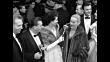 Faye Emerson and husband Skitch Henderson arrive at the 1953 New York City premiere of Warner Brothers remake of "The Jazz Singer".