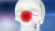 HD1080p: Stylized frame animation of a human skull indicating irritation and inflammation of the mucous membrane inside the nose with a red spot flashing as a pain. Zoom-In on a skull's infected nose.