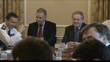 Jean Charles de Menezes shooting: Report findings; 10 Downing Street:Blair and Hayman seated around Cabinet table with Gordon Brown MP (Prime Minister), Alastair Darling MP (Chancellor of the Exchequer), Jack Straw MP (Secretary of State for Justice), David Miliband MP (Foreign Secretary) and other cabinet ministers