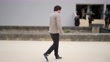 PARIS, FRANCE - JUNE 25: Jean Imbert wears a white t-shirt, a beige / brown zipper jacket, black suit pants, black leather and blue and beige Dior oblique jacquard sneakers from Christian Dior, outside Dior, during Paris Fashion Week - Menswear Spring/Summer 2022, on June 25, 2021 in Paris, France. (Footage by Edward Berthelot/Getty Images)