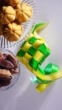 Kuih bahulu and ribbon ketupat and dry fruit date against white background - Vídeo de stock 4K